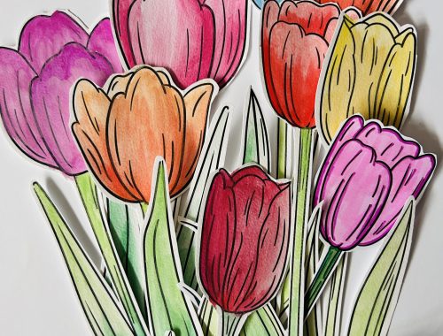 Po raz kolejny Kredka i Farba przygotowała dla nas piękne kwiaty do kolorowania. Po za markerami użyliśmy farb wodnych – akwareli. Wzory wydrukowałam na papierze przeznaczonym dla tych farba ( blok z Action). Tulipany zostały pomalowane przez dziewczyny. Kwiaty są…