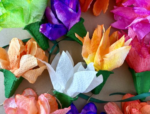 Tulipany z recyklingu. Materiały takie potrzebujemy to: wytłaczanki po jajkach, farby akrylowe, sznurek jutowy, drewniane koraliki, zielony papier, klej oraz nożyczki. Wycinamy kielichy kwiata z wytłaczanki i malujemy je farbami. Elementy nawlekamy na sznurek, przy koralikach robimy supełki, a na…